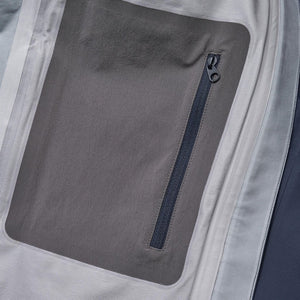 The jacket features laminated peaks, hems, and cuff tabs designed to enhance durability while minimising weight.