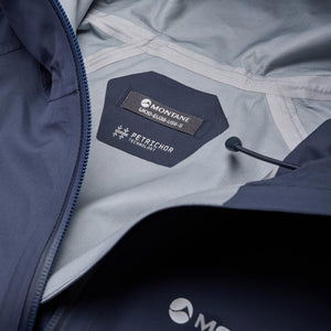 Montane’s PETRICHOR 3-layer technology delivers waterproof (20,000mm Hydrostatic Head), exceptionally breathable performance to the Cetus Jacket. It scores a RET rating of less than 7, which means it is ideally suited for high-output activities in the outdoors, where it will remain breathable to keep you dry inside and out. This is achieved through the windproof, non-porous hydrophilic membrane that transports water vapour and moisture away from the body, an effect that increases in strength as you work harder. The 3-layer construction sandwiches the waterproof membrane between a 100% recycled, 30D Ripstop nylon face fabric and the lining, for improved durability and next-to-skin comfort.